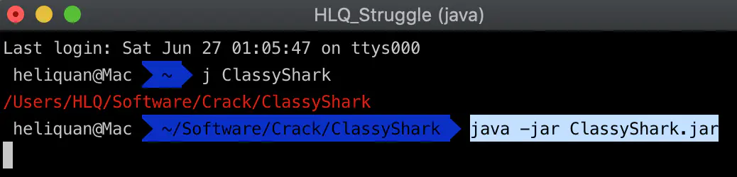 首先进入你下载好的 ClassyShark.jar 目录中,随后执行如下命令即可:
