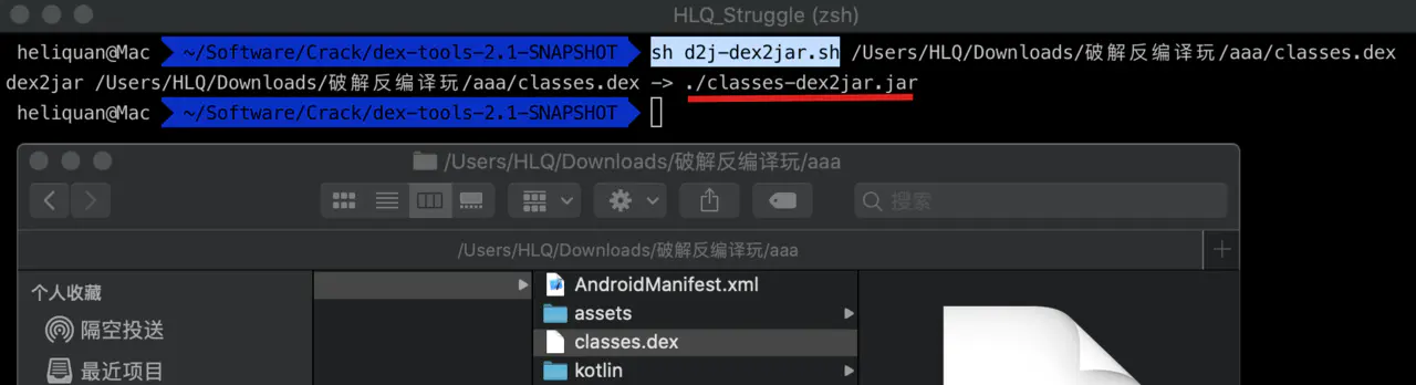 - sh d2j-dex2jar.sh [目标 dex 文件地址]